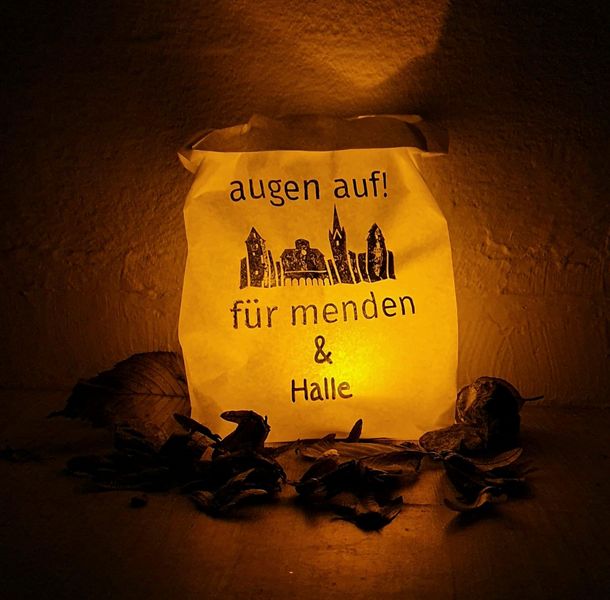 Mit Blick auf die Ereignisse in Halle an der Saale zeigt sich in Menden übrigens erneut, dass "Augen auf! Für Menden" inzwischen mehr ist als nur eine Gedenkveranstaltung einmal im Jahr. So zeigen viele Mendenerinnen und Mendener in den Sozialen Medien ihre Anteilnahme, indem sie z.B. ihr Profilbild bei WhatsApp durch ein Foto der Augen-Auf-Lichtertüte ersetzt haben.
