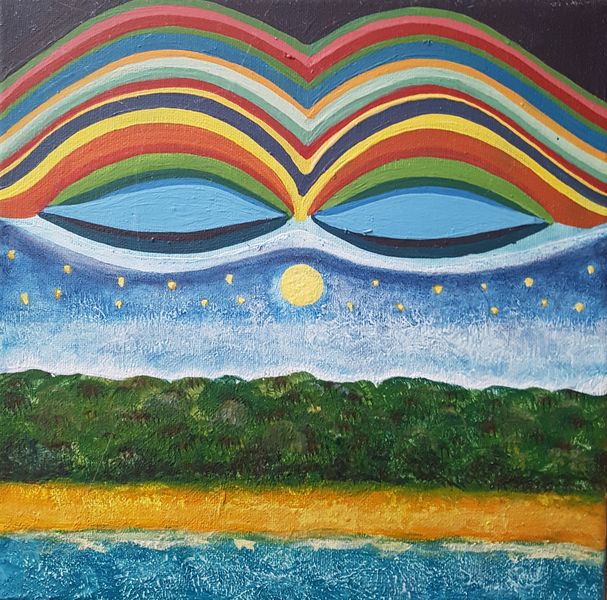 Während der stark einschränkenden Intensivphase der Corona-Pandemie hat sie versucht, ihre Reisegelüste auf künstlerische Art auszuleben. Mit Hilfe einer speziellen Technik, basierend auf Fotopapier, Ölfarbe und Verdünnung, entstehen kleinformatige, abstrakte und farbintensive Bilder. Diese Technik erlernte sie von der verstorbenen Künstlerin Klara Bernhardi auf Ibiza, mit der sie eine lebenslange Freundschaft verband. Vom Thema Landschaft inspiriert, bearbeitet sie die improvisierten und spontanen Bildergebnisse. Diese Landschaften führen uns ins Reich der Fantasie, des Traumhaften und Unbewussten - Landschaft auch als Abbild der Seele, als Zufluchtsort.