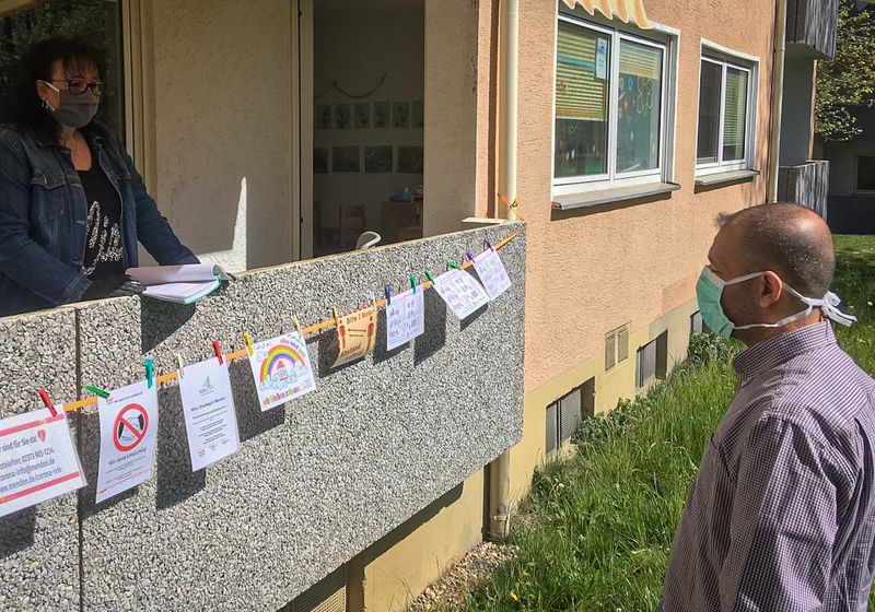 Am Mittwoch starteten sie die erste „Balkonberatung“ in der Unterkunft Wunne. Mit gebo-tenem Abstand und Freude sich wiederzusehen, beantworteten sie Fragen zum Thema Corona und Kinderbetreuung, hielten mehrsprachiges Informationsmaterial und wichtige Telefonnummern bereit und verabredeten den nächsten Termin.
