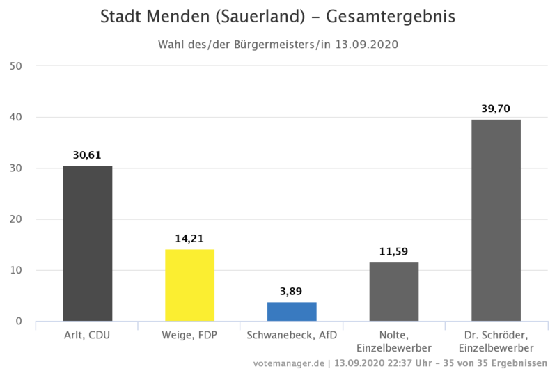 | Dr. Roland Schröder (parteilos) | 39,70 % |