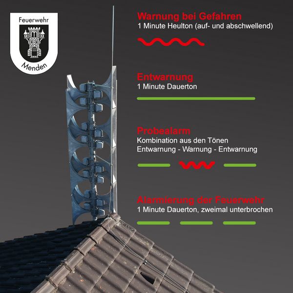 - Entwarnung: ein durchgängiger Ton (1 Minute)
