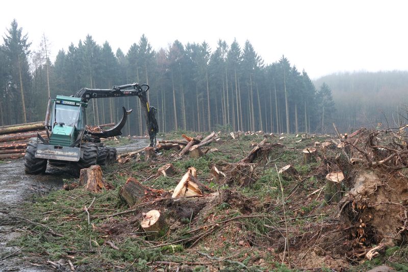 Die trockenen Sommer und Folge und der enorm hohe Bestand an Borkenkäfern haben dem Mendener Stadtwald stark zugesetzt. So gut wie alle Fichten sind betroffen und mussten gefällt werden. Zum Beispiel an der Zufahrt zum Waldfriedhof „Limberg“ (am Oesberner Weg). Die Fällarbeiten in diesem Bereich sind inzwischen abgeschlossen und die gefällten Bäume warten auf den Abtransport. Da der Holzmarkt diese Massen an Fichtenholz allerdings kaum mehr verkraftet, wird das Mendener Holz nach China verkauft. Dazu müssen die Stämme vor Ort auf eine vorgegebene Länge gekürzt und danach direkt in Überseecontainer verladen.