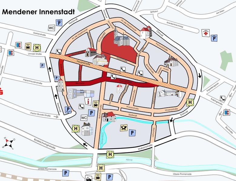 Aufgrund der Baustellen im Innenstadt-Bereich ist der Aufbau der Kinderflohmarktstände etwas eingeschränkt, da der Baustellen-Bereich an der Hauptstraße nur begrenzt nutzbar sein wird. Es werden aber immer noch genügend Stellflächen vorhanden sein. Tagesaktuelle Informationen gibt es beim Veranstalter und als Tagehinweis in der Presse. Grundsätzlich müssen alle Geschäftseingänge, beim Aufbau der Stände, frei bleiben und in den Hauptachsen der Straßenführung sind mindestens vier Meter breite Rettungsgassen vorgeschrieben. Durch die parallel laufende Veranstaltung „Menden á la Carte“ sind außerdem der Bereich unter dem Zeltdach vor dem Neuen Rathaus und Teile der Bahnhofstraße nicht für den Flohmarkt frei. Stattdessen wird der Markt in diesem Jahr, dank der Vincenz Gemeinde, auch auf dem Kirchplatz von St. Vincenz zu finden sein.