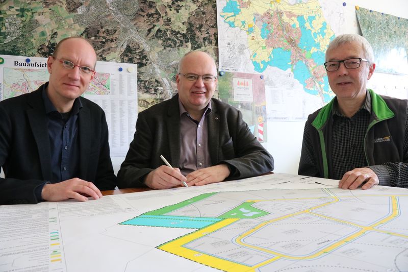 In Menden soll das künftig anders sein. Mit dem Gewerbegebiet Hämmer II oder Hämmer-Süd wird die größte zusammenhängende Gewerbefläche geschaffen, die in der Region ihresgleichen sucht. „Hämmer II wird definitiv ein Alleinstellungsmerkmal für Menden und eine Chance, um nicht nur Fachkräfte und Know-How nach Menden zu holen und in Menden zu halten, sondern auch, um neue Bürgerinnen und Bürger zu gewinnen“, freut sich Bürgermeister Martin Wächter. Und zur Freude hat das Stadtoberhaupt allen Grund: Wächter durfte jetzt die ausgefertigte Planurkunde zu Hämmer II unterzeichnen. Denn der Rat der Stadt Menden (Sauerland) hat in seiner Sitzung am 26.02.2019 den entsprechenden Bebauungsplan Nr. 205 „Gewerbegebiet Hämmer II“ beschlossen. Inzwischen wurde dieser Beschluss im amtlichen Bekanntmachungsblatt des Märkischen Kreises veröffentlicht. Damit ist der Bebauungsplan in Kraft getreten. Mit Wächters Unterschrift ist jetzt das Aufstellungsverfahren für den Bebauungsplan auch offiziell abgeschlossen. Nachdem alle notwendigen Grundstücke durch die Stadt erworben werden konnten, beginnen jetzt die Planungen für die Erschließungsanlagen des Geländes.