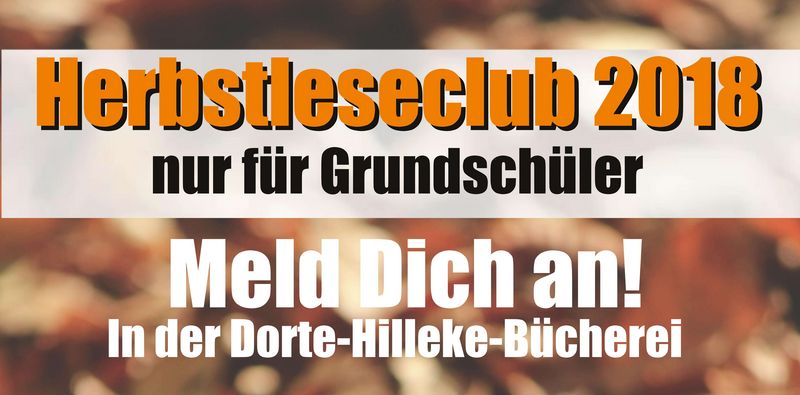 Wenn der Herbst sich mal nicht von seiner goldenen Seite zeigt, gibt es nichts schöneres, als sich mit einem Buch ins Warme zurück zu ziehen. Die passende Auswahl für kleine Bücherwürmer und solche, die es noch werden möchten, bietet der Herbstleseclub in der Dorte-Hilleke-Bücherei. Das Pendant zum Sommerleseclub ist speziell für Grundschüler. Ziel der Teilnehmer ist es, mindestens zwei Bücher aus der Kinderbuchabteilung zu lesen und anschließend ein wenig über den Inhalt zu erzählen. Für jedes vorgetragene Buch werden Stempel im Logbuch gesammelt. Wer zum Ende des Herbstleseclubs sein Logbuch mit der vorgegebenen Anzahl an gelesenen Büchern abgibt, darf sich anschließend über eine Urkunde freuen. Diese kann beim Klassenlehrer oder der Klassenlehrerin vorgezeigt werden, um die Teilnahme am Herbstleseclub auf dem Zeugnis vermerken zu lassen.