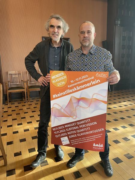 #keinstilleskämmerlein - unter diesem Motto veranstaltet das Kulturbüro der Stadt Menden eine neue Reihe von Klassikkonzerten. Dieses Kammermusikfestival tritt in die großen Fußstapfen der „Mendener Kammerphilharmonie“, die bislang den Bereich Klassik in der Mendener Kultursaison besetzt hat. „Die jungen Musikerinnen und Musiker, mit denen wir die Mendener Kammerphilharmonie besetzt haben, sind inzwischen erwachsen geworden. Viele haben feste Arrangements oder haben sich, leider, während der Pandemie anders orientiert“, resümiert der Leiter der Mendener Musikschule Holger Busemann. „Mit dem Kammermusikfestival #keinstilleskämmerlein sind wir uns sicher, diese Lücke zu füllen und vielen großartigen Musikerinnen und Musikern bei uns in Menden nach wie vor eine Bühne für die Klassik zu geben“, ergänzt Markus Koschinski vom Kulturbüro der Stadt Menden.