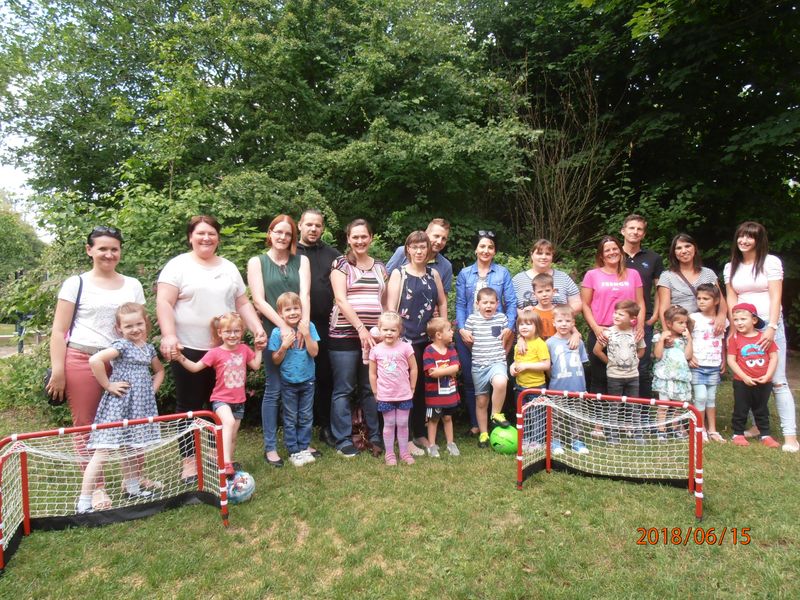 Da auch in den Familien die Fußball Weltmeisterschaft ein großes Thema ist, wurden gleich die ganzen Familien zu einer Familienaktion in die Kita eingeladen. Alle hatten Spaß am Torwandschießen, Dribbeln und freiem Spiel.