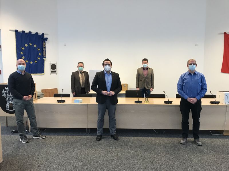 Der Landrat des Märkischen Kreises, Marco Voge, besuchte jetzt erstmals das Mendener Rathaus. Neben dem Bürgermeister der Stadt Menden (Sauerland), Dr. Roland Schröder, nahmen auch der erste Beigeordnete Sebastian Arlt, Stadtkämmerer Uwe Siemonsmeier sowie der leitende städt. Verwaltungsdirektor Frank Wagenbach an dem Treffen teil. Unter strengen Corona-Maßnahmen erfolgte ein kollegialer Austausch. Voge und Schröder freuen sich auf „die künftige gute Zusammenarbeit“.