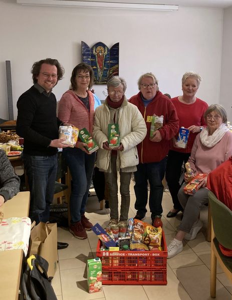 Im März hat der evangelische Kindergarten in Lendringsen (insbesondere die Eltern der Kindergartenkinder) einen Monat lang Lebensmittelspenden gesammelt. Diese Lebensmittelspenden wurden jetzt in die Christuskirche gebracht, wo gerade das Frühstücksangebot "Café Eden" stattfand. Die Lebensmittelspenden kommen diesmal den bunten Tüten zugute, die in der Gemeinde wöchentlich gepackt und anschließend verteilt werden.