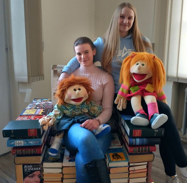Janna Edelhoff (l.) und Emma Gorzinski (r.) lesen in gemütlicher Atmosphäre das Buch „Der Bücherschnapp“ von Helen und Thomas Docherty aus dem ellermann im Dressler Verlag, Hamburg vor. Im Anschluss basteln die beiden mit den Kindern.