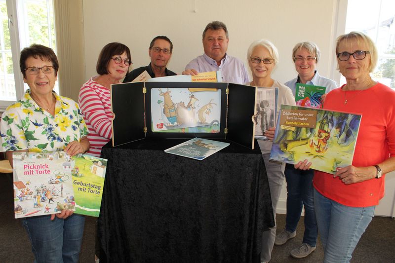 Das Mendener Netzwerk Vorlesen ist nun stolzer Besitzer eines Kamishibai-Theaters. Joachim Steuer, Vorstandsmitglied der Mendener Bürgerstiftung, überreichte den „Erzählschaukasten“ mit dem ausklappbaren Gestell und zahlreiche Bildkarten an die Mitglieder des Netzwerkes, das von der Betreuung durch die Bürgerbeauftragte in die Zuständigkeit der Dorte-Hilleke-Bücherei überführt worden ist.