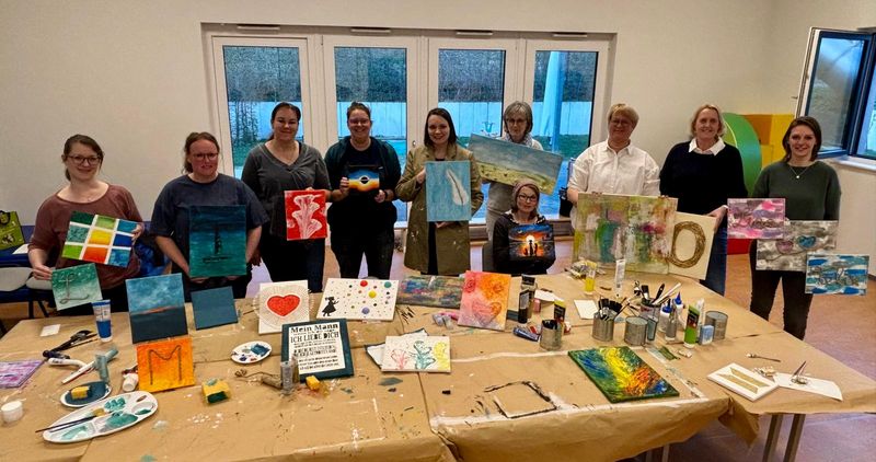 Die Beteiligten ließen sich auf das Besondere Kunsterlebnis ein, es war für alle eine spannende Erfahrung sich mit der eigenen Kreativität auseinanderzusetzten und verschiedenste Kunstobjekte entstehen zu lassen. „In jeder und jedem von uns steckt eine Künstlerin oder ein Künstler. Wir sollten nur den Mut haben, es auszuprobieren“, sind Julia Becker und Heike Schwantge überzeugt. In einer entspannten Atmosphäre konnten die Teilnehmerinnen gestalterisch und fantasievoll arbeiten. Der persönliche Austausch kam hier natürlich auch nicht zu kurz. „Eltern kreativ im Dialog, das ist eine gute Kombination. Sich an drei festen Terminen Zeit zu nehmen, kann eine große Bereicherung sein, vor allem im oft so stressigen Alltag“, ziehen Julia Becker und Heike Schwantge ihr Fazit. Neue Kontakt zu knüpfen und sich Zeit für sich zu nehmen, sei für die Teilnehmerinnen eine große Energiequelle gewesen.
