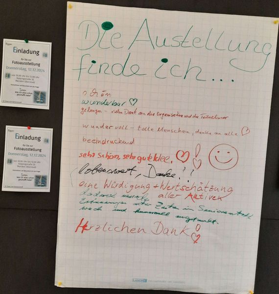 Nach der Eröffnung ist die Ausstellung der Porträt-Fotos noch bis zum 20. Dezember zu sehen. Die Möglichkeit des Besuchs besteht zu den Öffnungszeiten des Seniorentreffs, montags bis donnerstags von 9 Uhr bis 12 Uhr sowie von 13.30 bis 17 Uhr und freitags von 9 bis 12 Uhr. Interessierte können während dieser Zeiten die Bilder betrachten und eigene Geschichten beitragen.