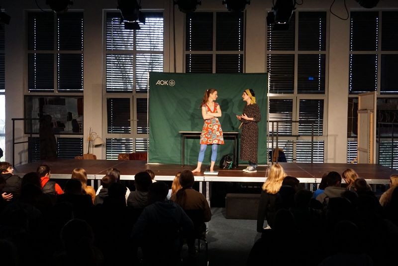 Das Besondere an diesem Stück: Die Schauspielerinnen Susanne Hocke und Viola Knapp, die während des Stücks in unterschiedliche Rollen schlüpfen, reflektieren im Rahmen einer theaterpädagogischen Nachbereitung in Kleingruppen mit den Jugendlichen die Fragestellungen des Theaterstücks. Außerdem sensibilisieren sie für die richtige Ansprache Betroffener und informieren über Hilfsangebote in Menden und Umgebung.