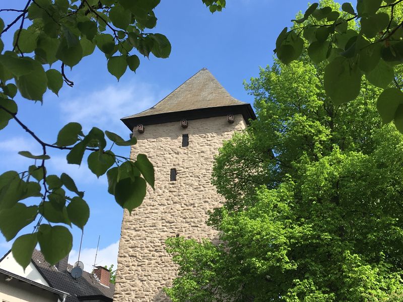 Schwindelfreie Besucherinnen und Besucher können im Anschluss von 12 bis 13 Uhr die 74 Stufen des Poenigeturms bis zur Besucherempore erklimmen (Turmstraße). Auf ihrem Weg dorthin begleiten sie die von Ulla Brockfeld und Dagmar Müller gefertigten Hexenschreine, eine eindrucksvolle Kunstinstallation zum Thema Hexenverfolgung in Menden.