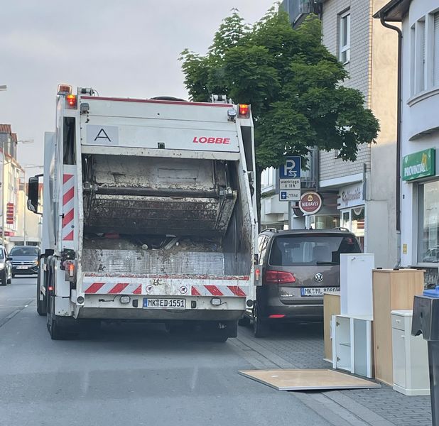 Nach den Schäden durch die starken Regenfälle und Überschwemmungen am Montag, 15. Mai 2023, wird im Mendener Süden auch weiterhin Sperrmüll abgefahren.