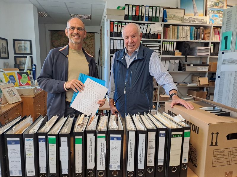 Bereits bei einem Besuch des ehemaligen Leiters des Bürgeramtes Lendringsen im Stadtarchiv Menden im April 2024 übergab Elmar Dederich Stadtarchivar Stephan Reisloh sechzehn Aktenordner gefüllt mit Lendringser und Hüingser Geschichte.
