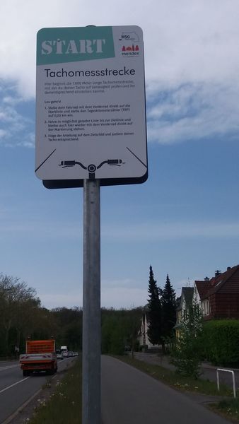 Wer über den Radweg an der B7 zwischen Menden und Hemer fährt, der hat sie sicherlich schon entdeckt, die Schilder mit der Aufschrift „Tachomessstrecke“. Hier ist es ab sofort möglich, sei-nen Tacho auf der ein Kilometer langen Teststrecke auf Genauigkeit zu überprüfen und diesen bei Bedarf entsprechend einzustellen.