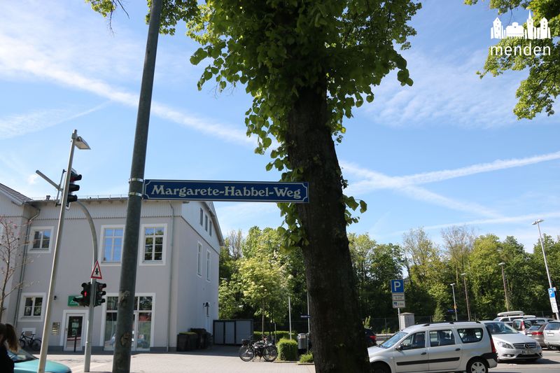 Jetzt, mehr als zehn Jahre nach ihrem Tod, erinnern blaue Straßenschilder mit weißer Schrift an Margarete Habbel. Der Fußweg entlang der Hönne, unterhalb der Straße „Untere Promenade“ trägt jetzt ihren Namen. Denn: diesen Weg soll Margarete Habbel noch bis ins hohe Alter nahezu jeden Tag gelaufen sein. Es soll ihr Lieblingsweg in Menden gewesen sein.