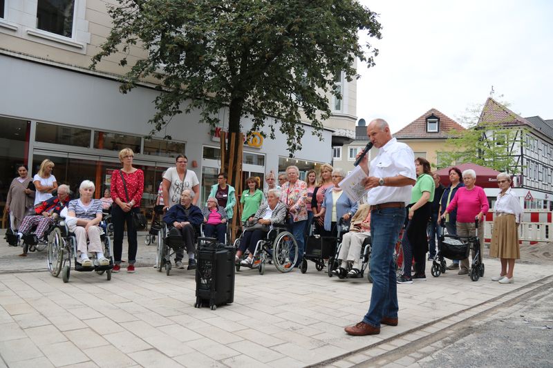 In der Hochstraße bermerkte ein Bewohner des HANSA Seniorenwohnparks dann zufrieden, wie viel angenehmer das neue Pflaster im Vergleich zum ehemals ruppeligen Kopfsteinpflaster für Rollstuhlfahrer zu befahren sei.