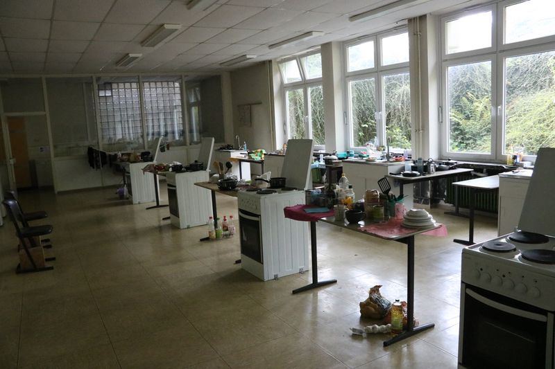 Die ehemalige Hauptschule Lendringsen wurde vorsorglich als kurzfristige Unterbringung hergerichtet und wird nun auch seit ca. zwei Wochen als solche genutzt. Bis zu 80 Menschen können dort untergebracht werden - aktuell leben dort 32 Menschen. „Alle, die dort untergebracht sind, stammen aus der Ukraine. Bei der Unterbringung achtet der Sozialarbeiter vor Ort darauf, dass Familienangehörige gemeinsam untergebracht werden“, so die Erste Beigeordnete, Henni Krabbe. „Gestern sind 19 Personen gleichzeitig in Menden angekommen, die dort vorübergehend eingezogen sind“, so Krabbe. Zum Zeitpunkt der Begehung der SPD waren also nur 13 Menschen in der Hauptschule untergebracht. Dort stehen acht Klassenräume mit maximal zehn Betten bereit. „Die Hauptschule ist im Moment nicht einmal zur Hälfte ausgelastet. Was die Ausstattung angeht, müssen auch wir als Stadtverwaltung mit teils langen Lieferzeiten leben. So werden bereits vor Monaten bestellte Trennwände und Schränke hoffentlich in dieser oder der kommenden Woche geliefert. Dass die Situation dadurch nicht optimal ist, wissen wir. Da die Hauptschule aber längst nicht an ihrer Kapazitätsgrenze angekommen ist, haben die dort lebenden Familien genügend Raum. Wie die gesamte Flüchtlingssituation ist aber auch dies für uns nicht alltäglich und wir lernen aus den Prozessen. Hinweisen über Missstände gehen wir unmittelbar nach und versuchen, diese zu beseitigen“, so Krabbe weiter. Dies betreffe auch die Ausstattung des Sozialarbeiters vor Ort. So werden auch weiter Ausstattungsgegenstände angeschafft und nachgeliefert. „Morgen und übermorgen werden z. B. Wäschetrockner durch ein Mendener Unternehmen geliefert. So etwas wie Wäscheständer schaffen wir zusätzlich gerne noch an.“ Außerdem werden derzeit ein Spielraum für Kinder und ein Aufenthaltsraum für Jugendliche eingerichtet.