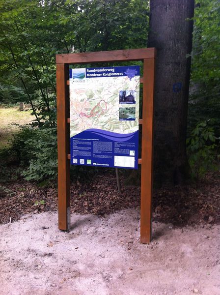 Zur besseren Orientierung auf den Rundwanderwegen Z- und O-Weg weisen ab sofort neue große Wandertafeln den Weg. Zu finden sind die Orientierungstafeln für den Z-Weg, der durch das beeindruckende Mendener Konglomerat führt, am Parkplatz des Hexenteichs und für den über die Oesberner Hochebene führenden O-Weg, am Parkplatz der Aloysius-Kapelle.
