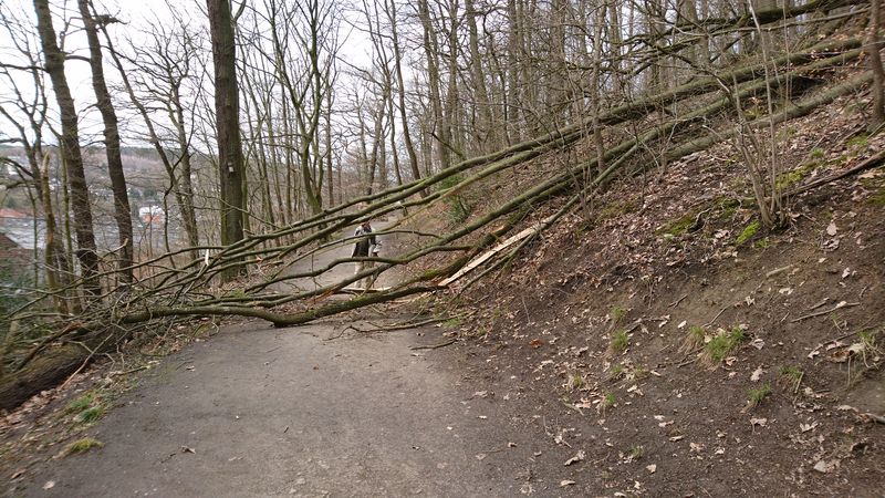 Das hat sich am Osterwochenende gerade an einer Stelle im Mendener Stadtwald ganz besonders gezeigt: Dort, wo noch kurz zuvor zahlreiche Menschen zu Fuß unterwegs waren, die an der „Mendener Kreuztracht“ teilgenommen hatten, ist in den Stunden nach der letzten Prozession entlang des Prozessionsweges ein Baum umgestürzt. Auslöser war ein weiterer Baum, der – wäre er alleine umgestürzt – den Prozessionsweg niemals erreicht hätte. Beim Sturz hat dieser Baum allerdings einen weiteren Baum mitgerissen. Dieser zweite Baum fiel auf den Fußweg.