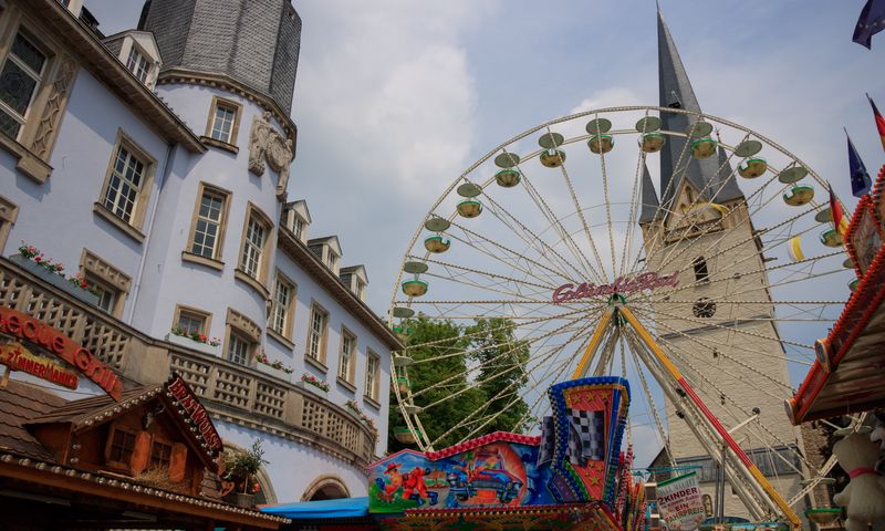Die alljährlich in der gesamten Innenstadt stattfindende Kirmes beginnt am Samstag vor Pfingsten und endet dienstags mit einem Höhenfeuerwerk.