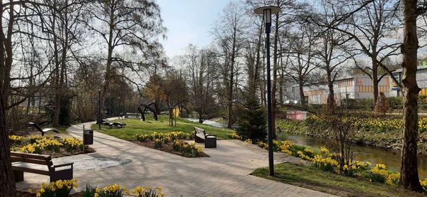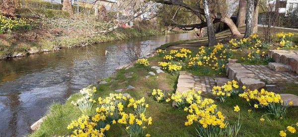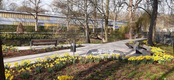 Im Frühjahr gibt es ein besonderes Highlight: Das neu gepflanzte Narzissenband entlang der Hönne leuchtet in strahlendem Gelb und erfreut alle Besucher*innen und Gäste, auch als Fotomotiv.