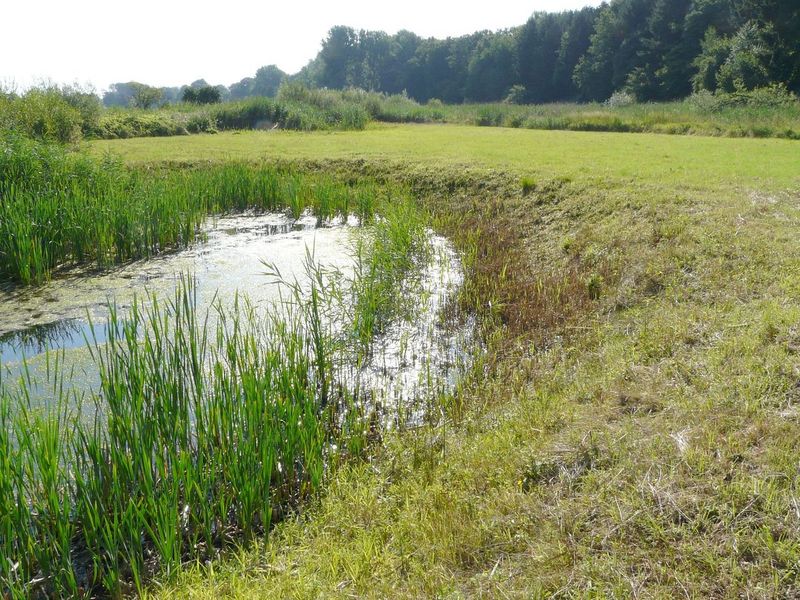 Dieser Eingriff ist durch eine Aufwertung der Biotopfunktion einer anderen Fläche auszugleichen. Dabei ist von dem aktuellen/bisherigen Biotopwert der ins Auge gefassten Ausgleichsfläche auszugehen, denn es wird für den Ausgleich nur die Aufwertung angerechnet (die der Differenz zwischen dem aktuellen Biotopwert der betreffenden Fläche und dem Biotopwert des Entwicklungsziels entspricht). Fortführung der Beispielsrechnung (angenommen, der Bauherr kann Ackerfläche für die Ausgleichsmaßnahme zur Verfügung stellen, möchte die Aufwertung durch eine einfache Pflanzung heimischer, standortgerechter Sträucher erreichen und will nun wissen, wieviel der Ackerfläche er für den Ausgleich benötigt): auf einer Ackerfläche (Wert 2) soll der o.a. Eingriff von 600 ÖP durch eine Strauchpflanzung (als ungeschnittene Hecke - Wert 5) ausgeglichen werden → 600 ÖP : (5 - 2) = 200, d.b., dass 200 m² der Ackerfläche für die Ausgleichsmaßnahme bereitzustellen sind.